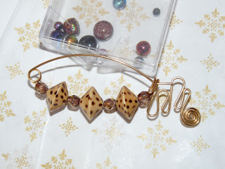 Please ignore the little clear plastic box which is being used to prop up the fibulae. I can make these in any size and in any colours (if I've got the relevant beads, that is). They're designed to be worn on the right hand side with the swirls pointing downwards and can go on knitwear, hats, scarves, etc. I'm rather pleased with them, and they're available at
